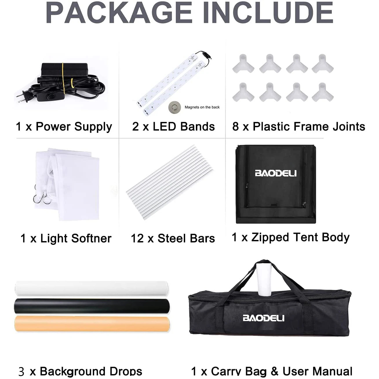 La Lightbox Pro Décor Noir de BAODELI combine design élégant et performance technique pour sublimer vos petits objets (bijoux, montres, accessoires). Son cube de 40×40×40 cm intègre 132 LEDs 5500 K (CRI > 92) à gradation continue (1 %–100 %), offrant un éclairage sans ombres et des couleurs fidèles.